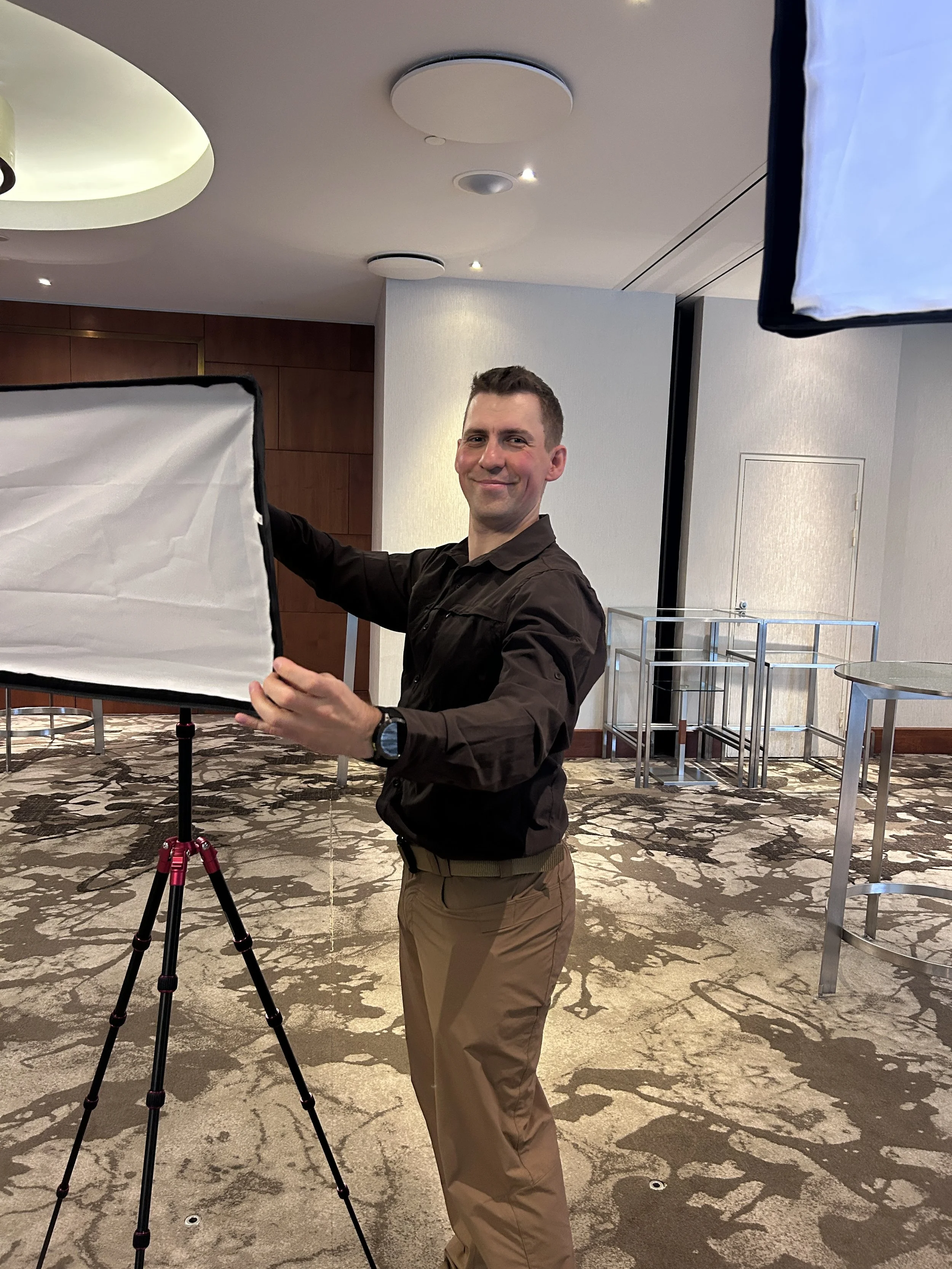 Whether I'm shooting at my studio in Warsaw Wesoła or traveling to a client's office, I set up lighting and backdrops ahead of time. For on-location work, I arrive early to figure out the space and handle any curveballs.